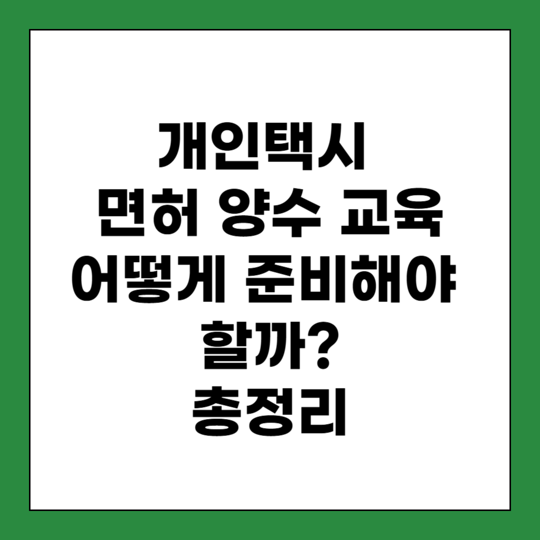 개인택시 양수교육은 면허 양수를 위한 필수 과정입니다. 예약 방법부터 비용, 절차까지 꼼꼼하게 확인하여 착오 없이 준비하세요!